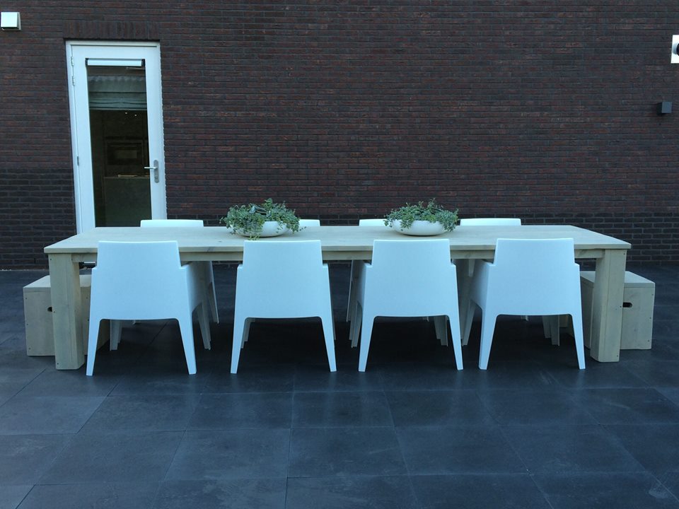 Grote tafel van douglas houten planken in de kleur greywash.